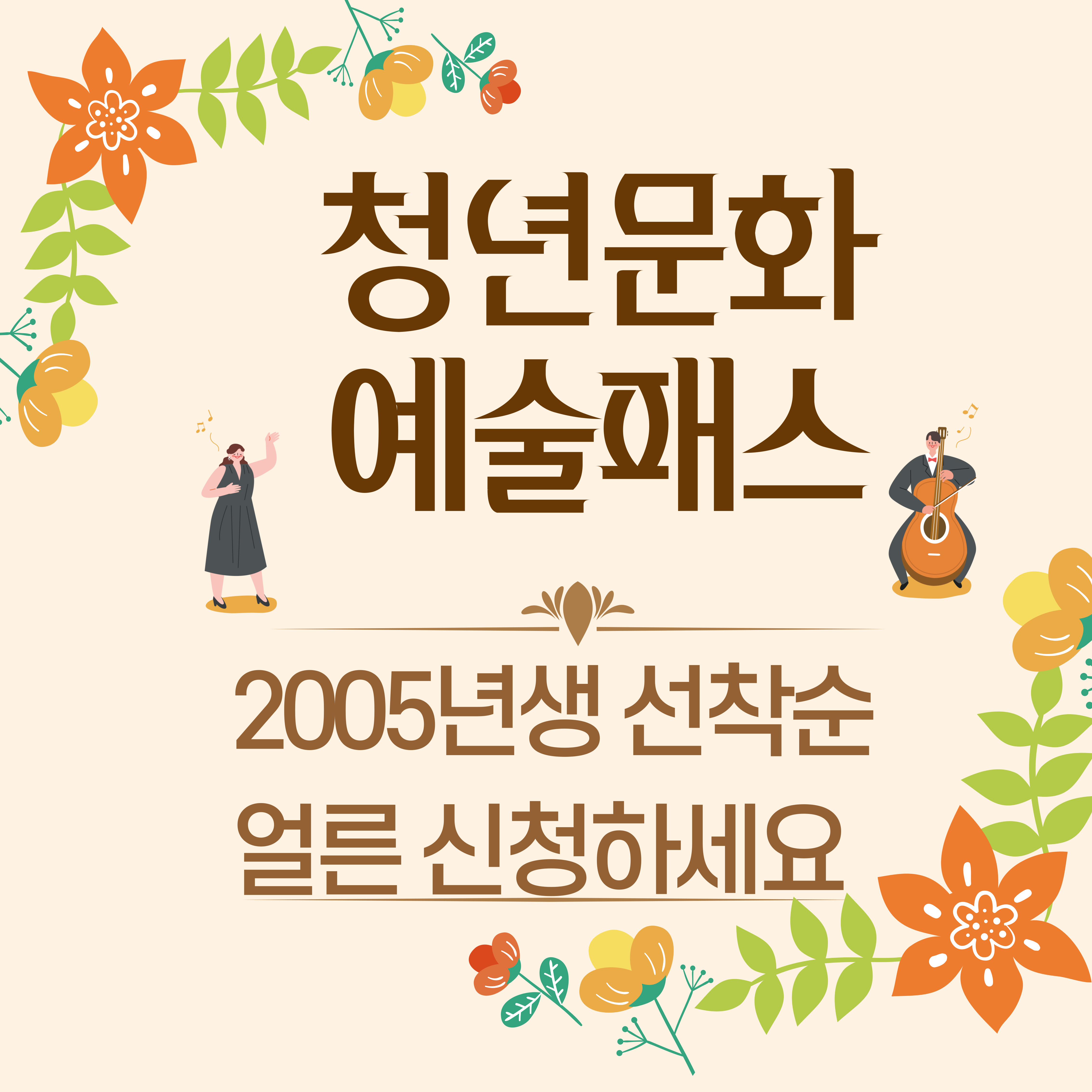 2005년생 분들은 청년문화예술패스 신청방법과 사용방법을 참고하여 빨리 신청하시기 바랍니다.