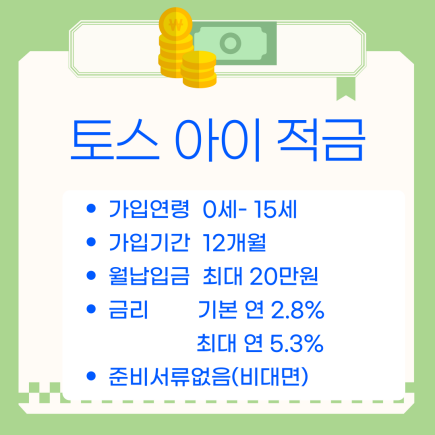 토스 아이적금 이자율 5.3% 미성년자 주택청약적금 대신 이거